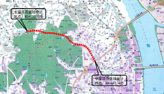 長望路西延線位于湘江新區(qū)范圍內(nèi),路線呈東西走向。道路西接黃金大道,往東沿谷山森林公園北側(cè)山體埡口,穿過龍湖湘風(fēng)原著,往東接現(xiàn)狀金星北路,再向東南連接現(xiàn)狀西二環(huán),道路全長4.611KM,并對長望路(西二環(huán)-觀沙路)段進(jìn)行了改擴(kuò)建設(shè)計(jì),長度0.611KM,金星路、黃金大道立交范圍內(nèi)的主線及輔道進(jìn)行改造。本標(biāo)段范圍為K0+000-K1+520。其中包括跨線一座、下穿式矩形框架橋一座、地下人行通道一座,線路設(shè)計(jì)為城市主干路、設(shè)計(jì)車速60km/h。